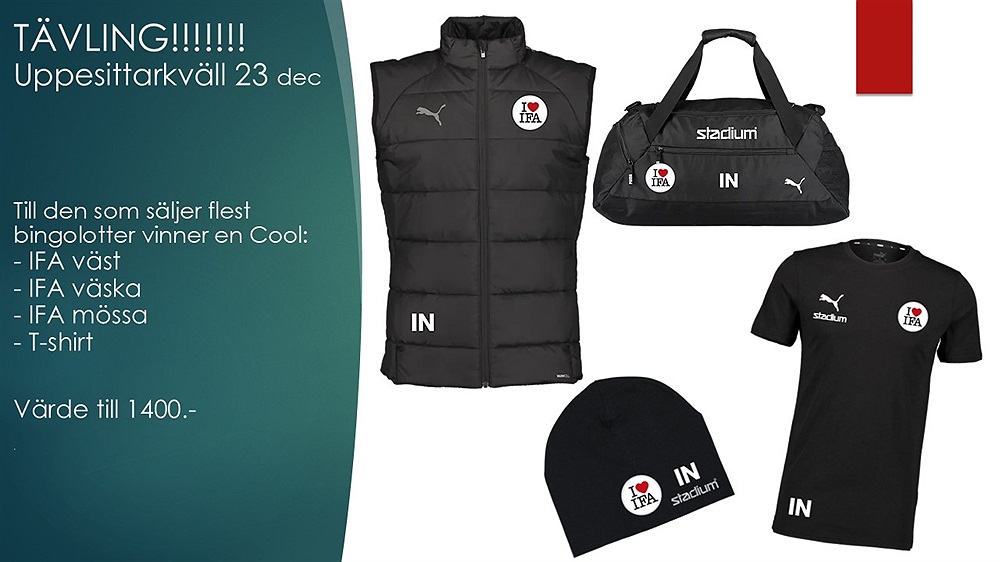 Till den som säljer flest bingolotter uppsittarkväll den 23 dec vinner priser till ett värde av 1400.-